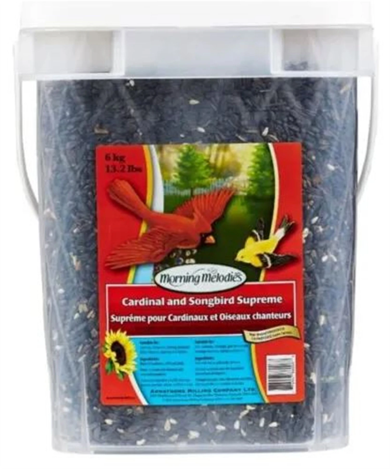 Morning Melodies Cardinal & Songbird Supreme comes in a convenient pail format with a re-closable lid and handle – making storage and feeding clean & simple.