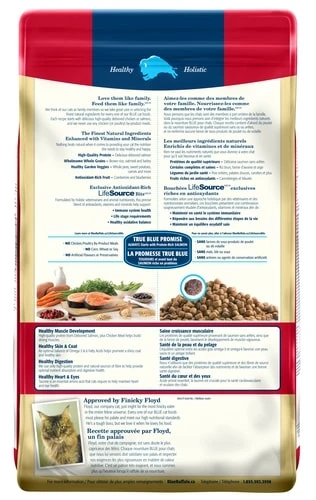 BLUE for Cats dry cat food recipes are made with the finest natural ingredients enhanced with vitamins and minerals. Starting with real meat as the 1st ingredient, they include wholesome grains, veggies and fruit, plus our exclusive, antioxidant-rich LifeSource Bits® to support your feline’s overall health and well-being. BLUE for Cats has formulations to meet all of your cat’s life stage and lifestyle needs, from hairball and weight control to sensitive stomach and healthy aging recipes. BLUE for Cats is a product of the Blue Buffalo company. Based in the United States, Blue Buffalo makes premium-quality pet foods.
