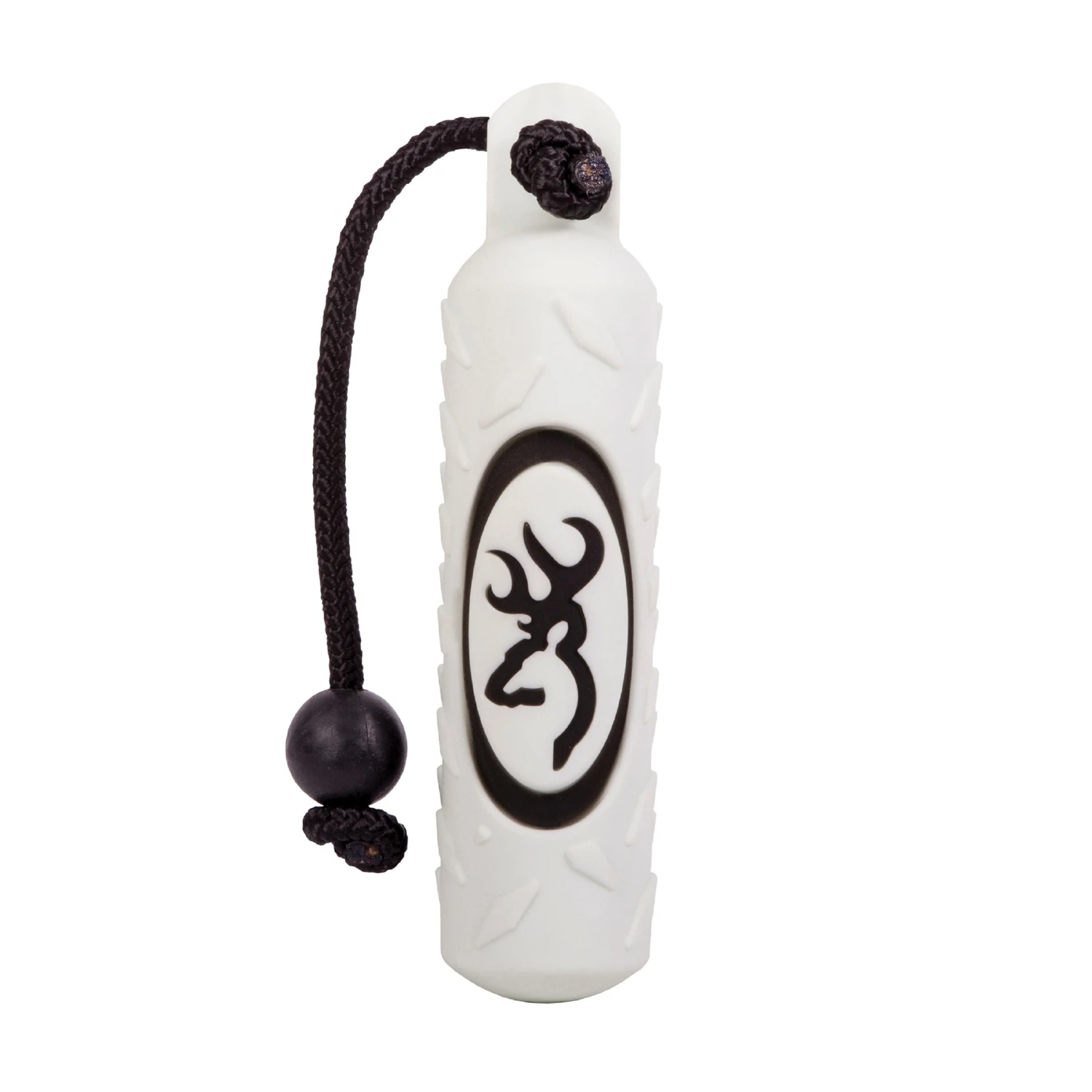 Large soft vinyl floating training dummy with floating throw rope handle. Rubber ball for greater throwing velocity. Textured surface for better grip and hold. Leak proof design. White is visible against most backgrounds for ease of locating. (1-0-11345)