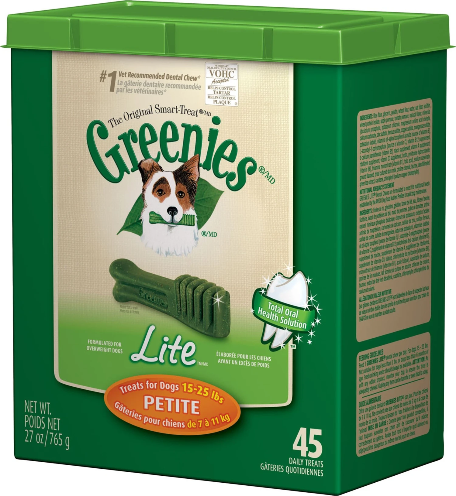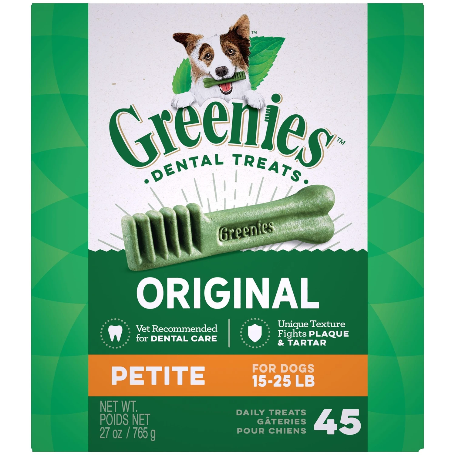 GREENIES® Original Canine Dental Chews – Petite Size – Treat TUB-PAK™ Package (27 Oz.) – 45 Count