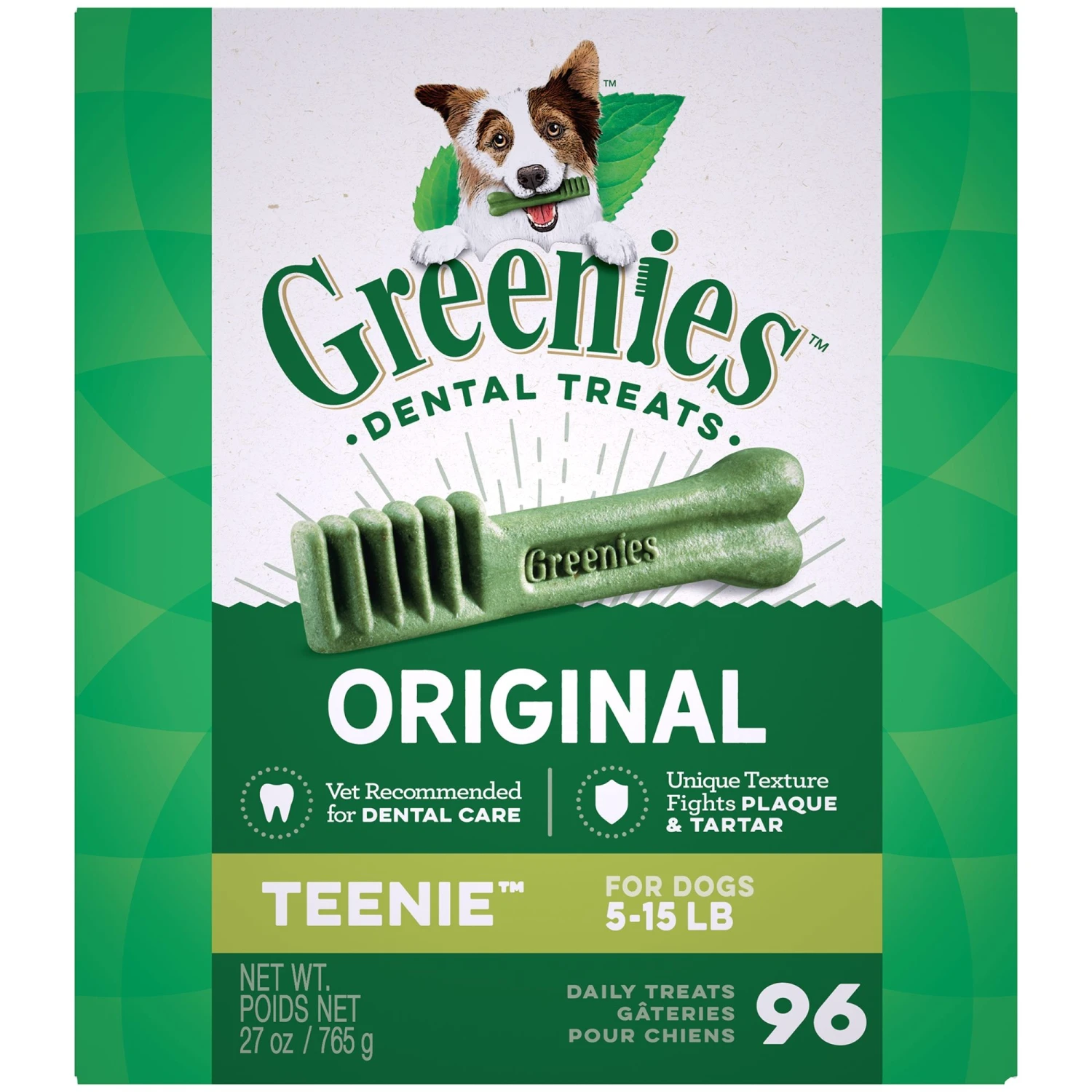 GREENIES® Original Canine Dental Chews – Teenie Size – Treat TUB-PAK™ Package (27 Oz.) – 96 Count