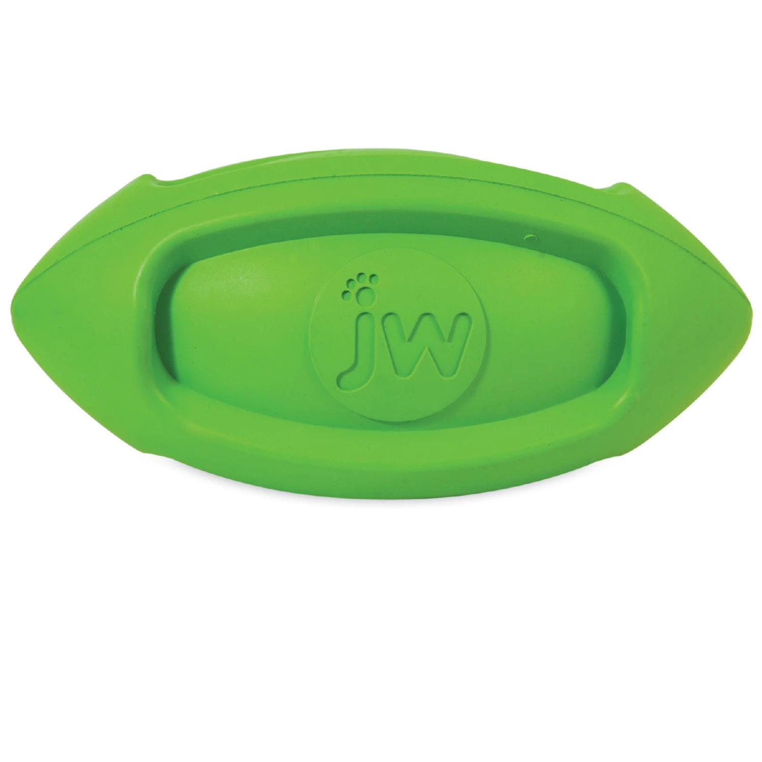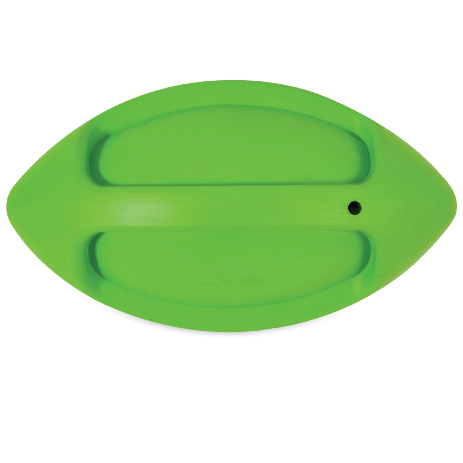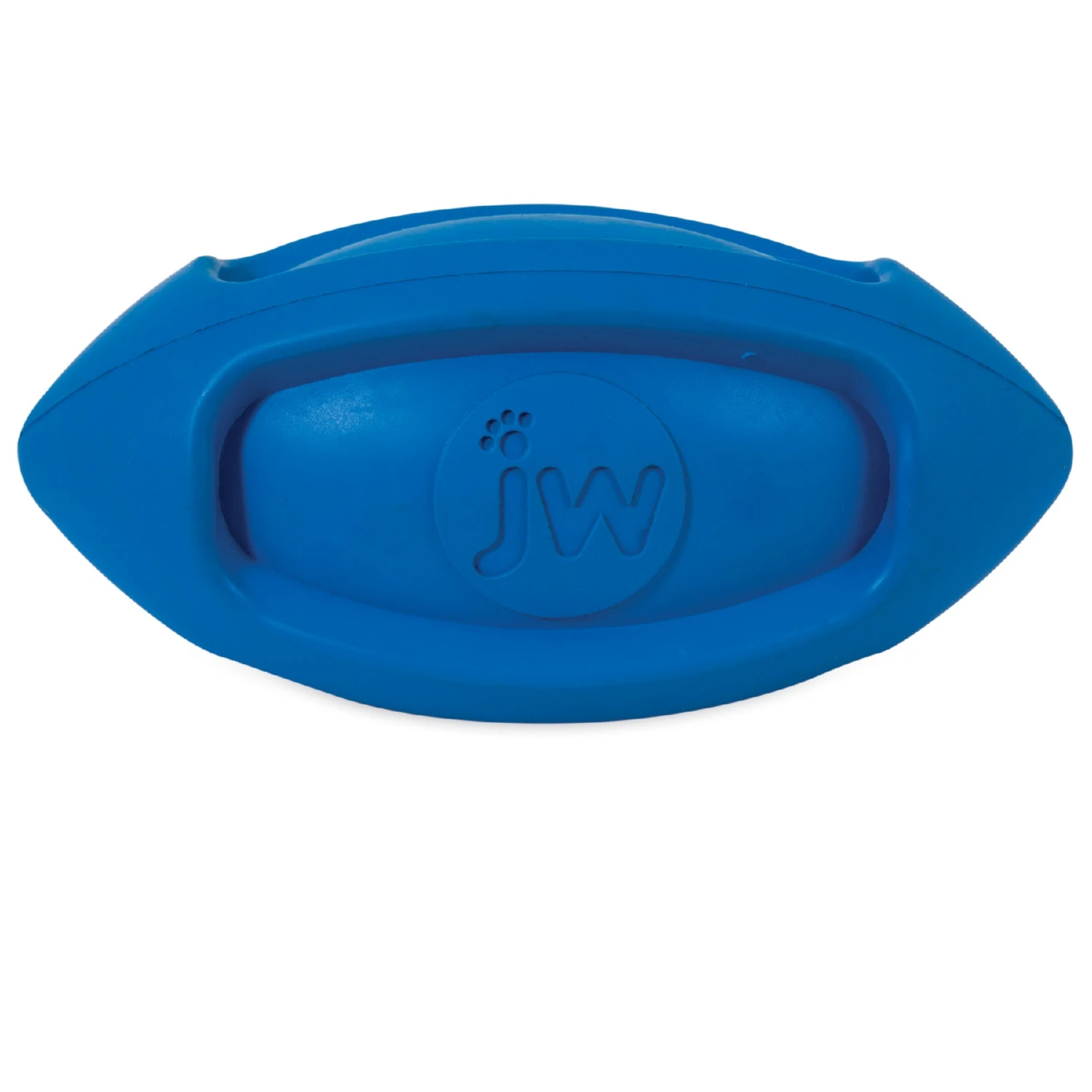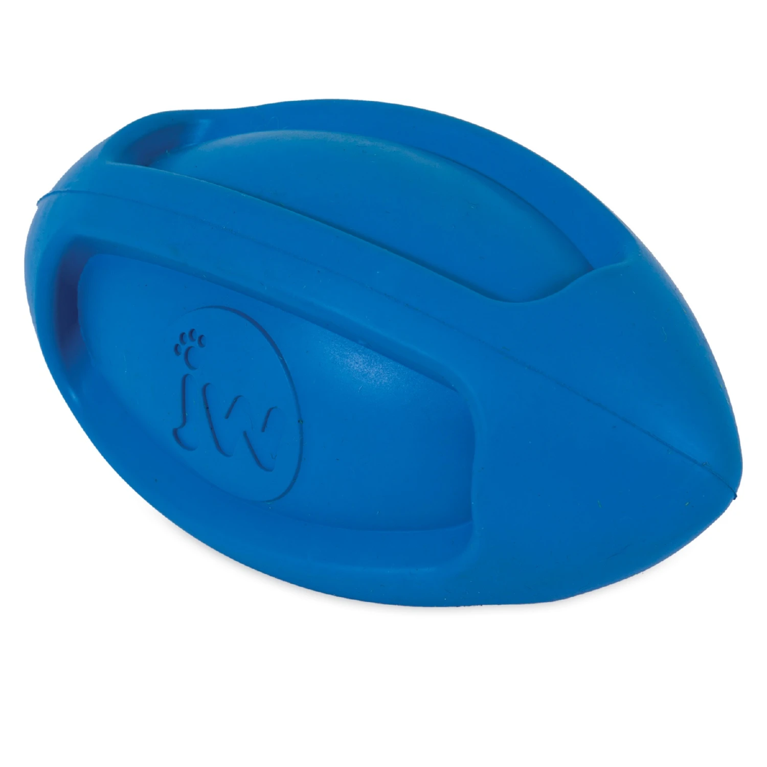 JW’s® iSqueak® Funble Football is a toy you will score big with! This football-shaped; squeaky dog toy features thick-walled; heavy-duty rubber and a long-winded squeaker on the inside to keep your dog entertained during playtime. Designed to stand up to play; the iSqueak Funble Football is great for fetch and chewing on; and is gentle on your dog’s mouth as they pick up and chew on the ball. You and your dog are sure to have a ball playing with this fun dog toy! Ships in two assorted colors: blue and greenPRODUCT NOTE: Every dog plays differently with their toys. No dog toy is truly indestructible. It’s always a good idea to keep a close watch on your dog to keep your dog safe. ALWAYS remove the toy from being played with its pieces break off.
