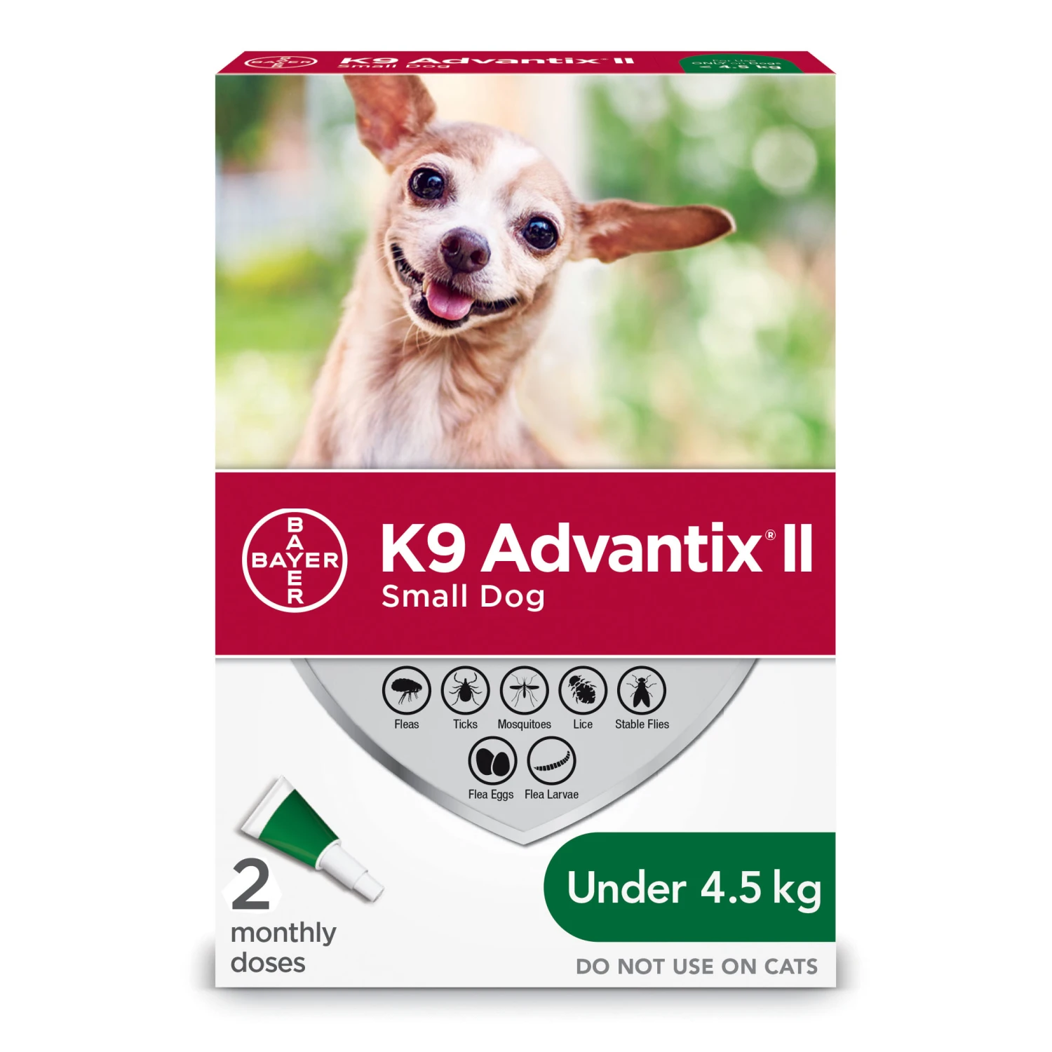 Veterinarian recommended K9 Advantix II kills parasites through contact – no biting required. Did you know that flea bites can cause flea allergy dermatitis (FAD) and skin infections? A single flea can lay up to 50 eggs per day leading to infestations even in your home. In addition to biting and feeding on pets, ticks can transmit diseases like Lyme disease. Bites from infected mosquitoes can spread heartworm disease. DO NOT USE K9 Advantix II ON CATS.