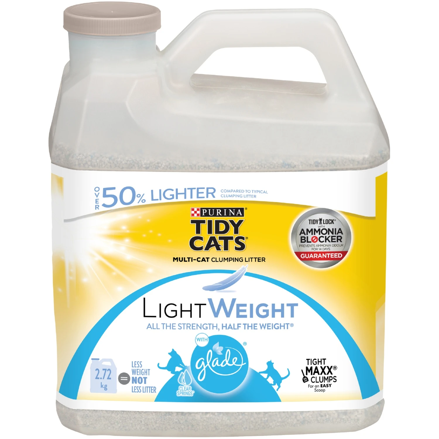 1-Prevents ammonia odour for 2 weeks, guaranteed 2-50% lighter 3-Continuous odour control 4-Light, tight clumps for easy scooping 5-Powerfully absorbent 6-Low dust for a clean, easy pour