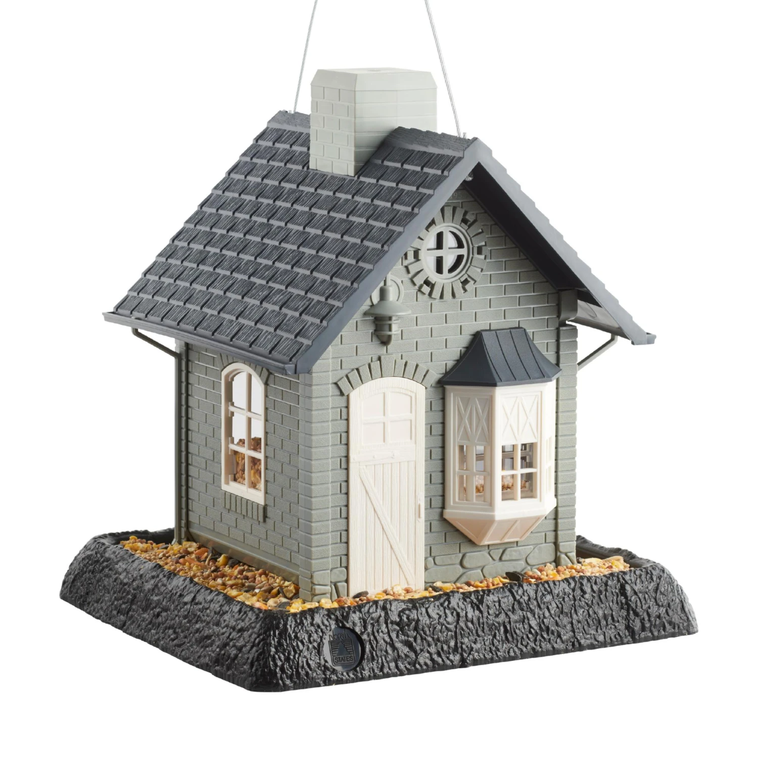 The Bayside Cottage Birdfeeder is part of the ever growing Village Collection of feeders. The siding on this cottage is a light shade of gray and its roof is a darker charcoal gray, and features a copper-look roof over the bay window.
