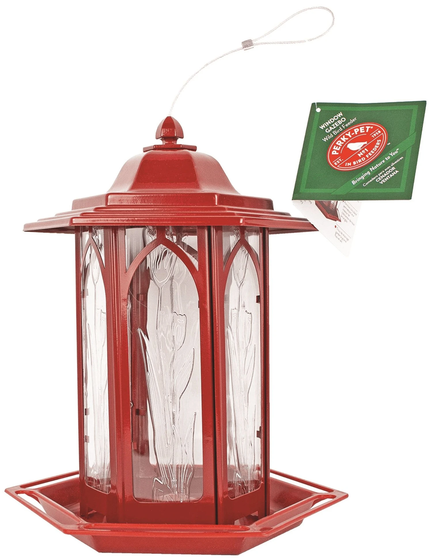 Make your backyard the go-to hangout spot for wild birds with the Perky-Pet® Pistachio Gazebo Feeder! This feeder boasts a wraparound seed tray that allows birds to perch anywhere around the feeder. With the ability to hold up to 3.5 lb of mixed seed, your favorite backyard birds won’t be able to resist flocking to your yard! In addition to offering features birds love, this feeder also makes a charming addition to any outdoor setting with its quaint gazebo-style design. The powder-coated finish prevents rust to ensure it will be a focal point for years to come.