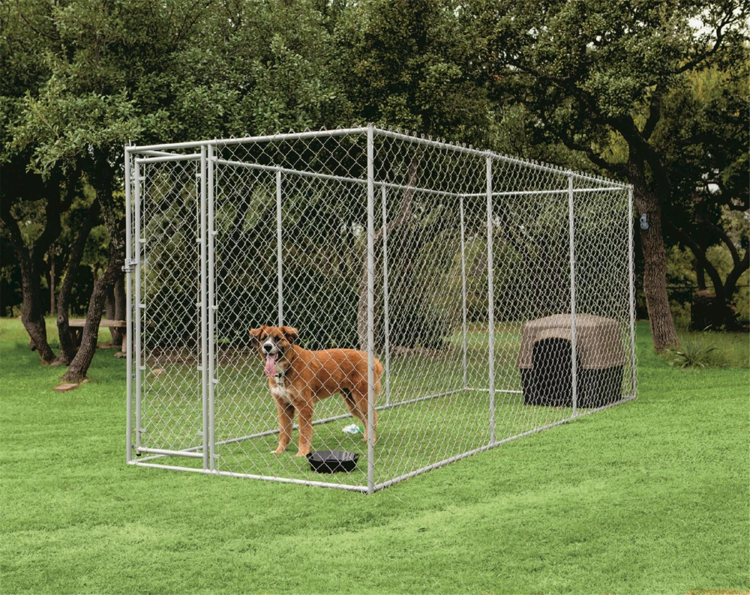 Let your dog enjoy some fresh air with the Aspen Pet Chain Link Outdoor Dog Run Designed to accommodate small medium and large dogs this versatile containment run features a galvanized steel body and powder coat steel tubing for strength and durability 2 in 1 Dog Run 9.5InX14.5InX75In.