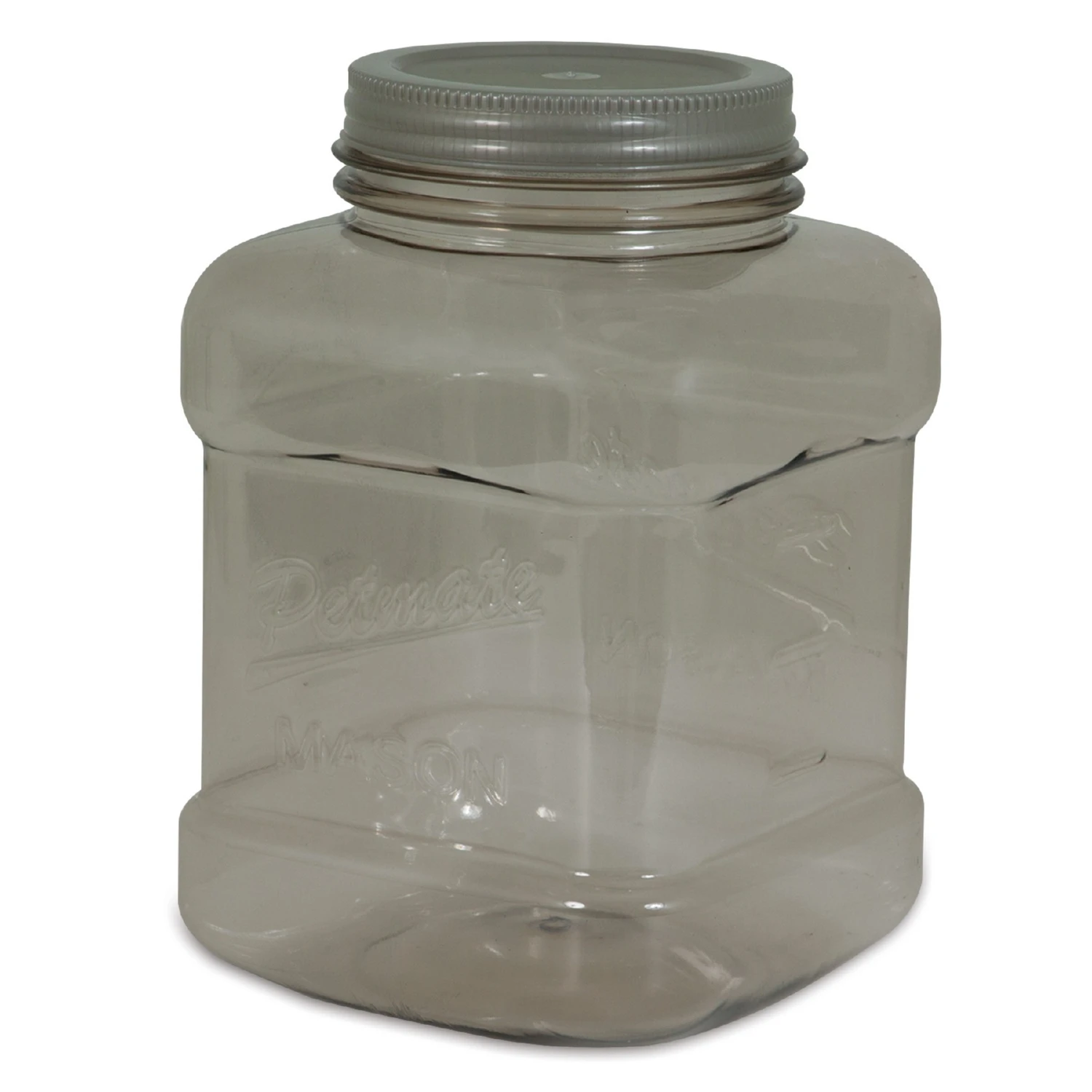 Inspired by the popular glass Mason Jars found in many kitchens the stylish Petmate® Mason Treat Jar features a screw top plastic lid to keep your pet’s treats fresh. The space-efficient squared design and light smoke colored tint allow you to see when the treats need to be refilled. The wide-mouth design provides easy access to your pet’s favorite treats. Constructed using PET (Polyethylene Terephthalate) which are recycled bottles that reuse the material out of which they are made to reduce the amount of waste going into landfills. 150-ounce capacity. Made in the USA.