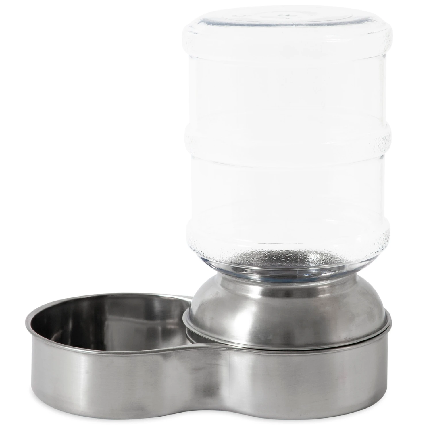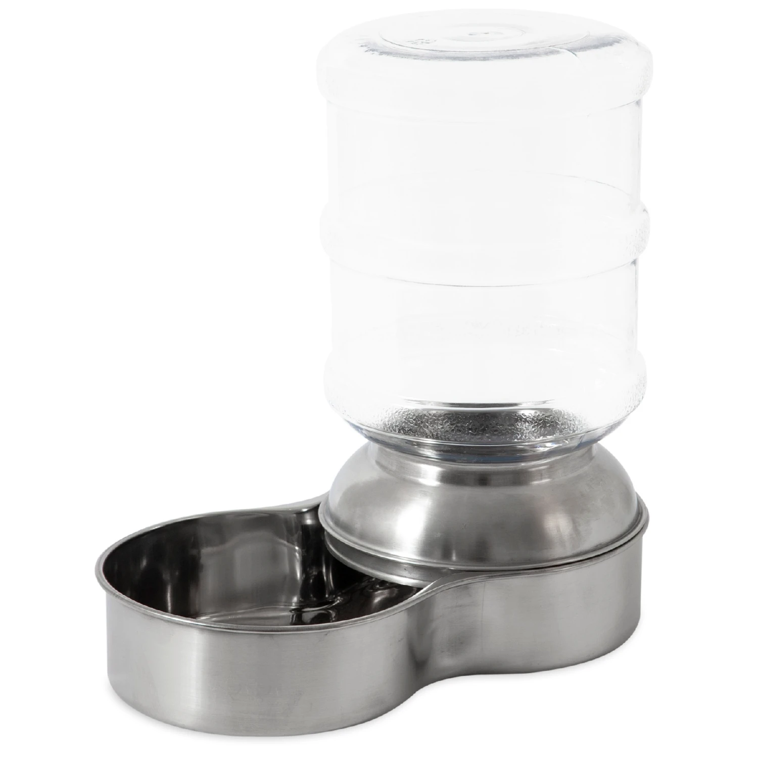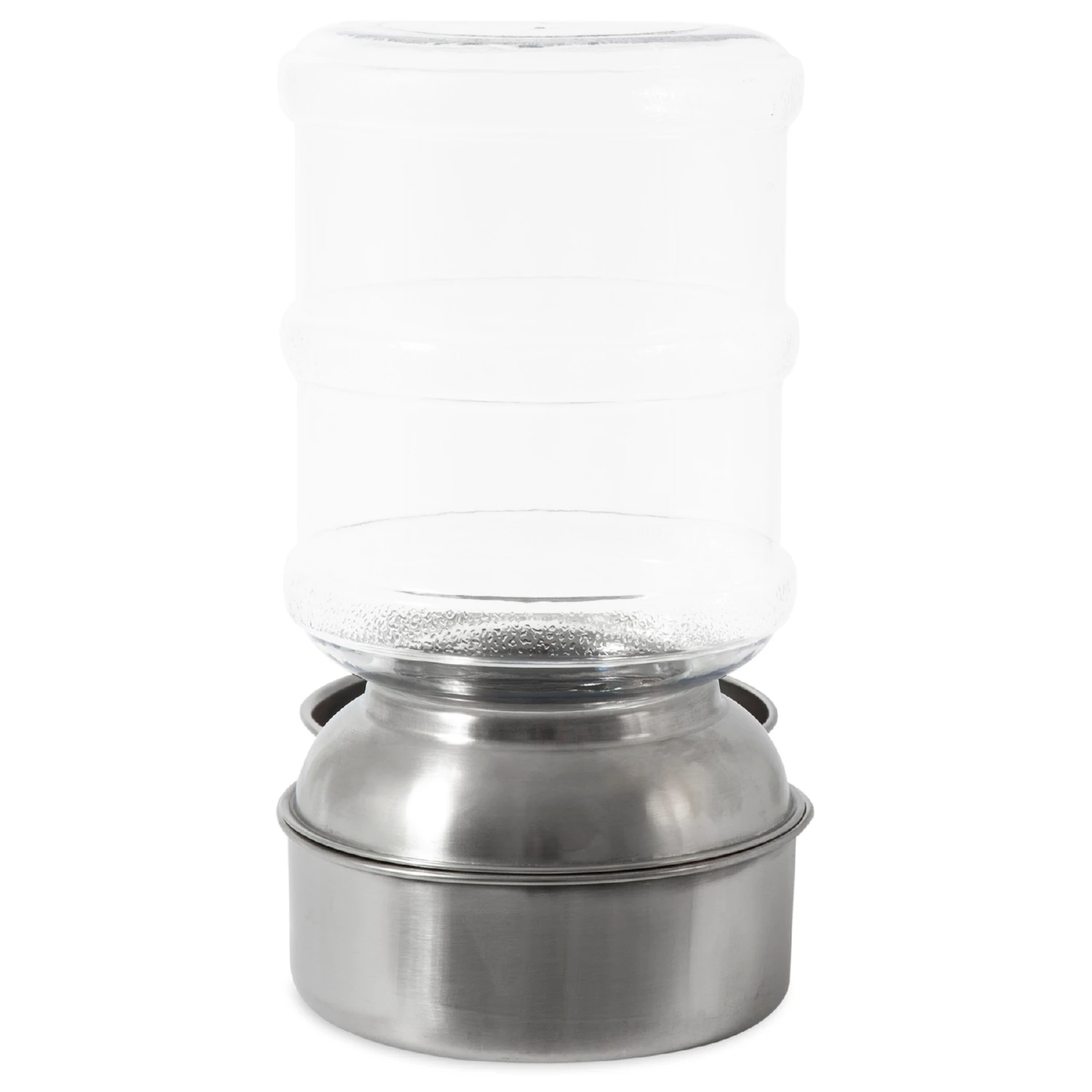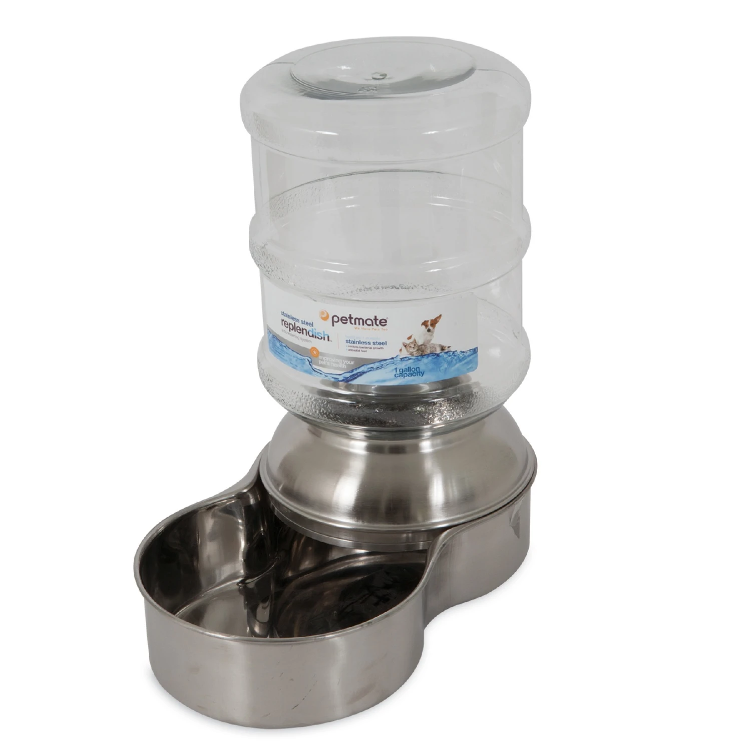 The Petmate® Stainless Steel Replendish® Waterer is perfect for pet parents that want to provide a constant flow of freshwater throughout the day for their pet even when they’re not home. The vet-recommended stainless steel base resists harmful bacteria growth and can be safely put into the dishwasher for easy cleaning and sanitizing at high temperatures. The Waterer features recessed areas for easy lifting and water filling; and non-skid rubber feet to keep spills and movement to a minimum. A decorative smoke-colored one-gallon bottle complements the stainless steel base and has a wide mouth to make cleaning easy. Made in the USA.PRODUCT NOTE: While the Mason Base is dishwasher safe; the Mason Bottle is not. We recommend cleaning the bottle with a bottle brush and warm soapy water. Let air dry.