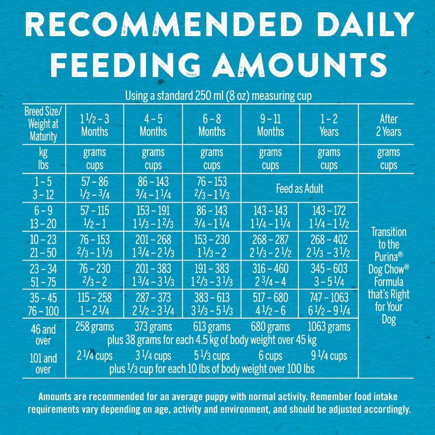 Provide the nutrition your puppy needs to get a great start in life with Purina Puppy Chow With Real Chicken, dry puppy food. Every serving of this puppy food contains 100 percent of the essential nutrients puppies require to grow big and strong, and the delicious taste gives them a reason to clean their bowl at every feeding. Tend to your growing pup’s nutritional needs through the vital early stages of their development with this dry puppy food and take comfort in knowing theyre getting a highly digestible formula your puppy will look forward to eating every day. This recipe supports your puppys growing muscles, so they can keep up with their adventurous canine pursuits. Dish up a serving of this Purina Puppy Chow puppy formula and let them know you care about their health and happiness. Purina Puppy Chow with Real Chicken puppy food provides the Building Blocks of puppy nutrition to help lay the foundation for a healthy, active life. The Healthy Start blend provides high-quality protein, including real farm raised chicken, DHA for brain and vision development, antioxidants like vitamin C, and 100 percent of the essential nutrients for your puppys first year.