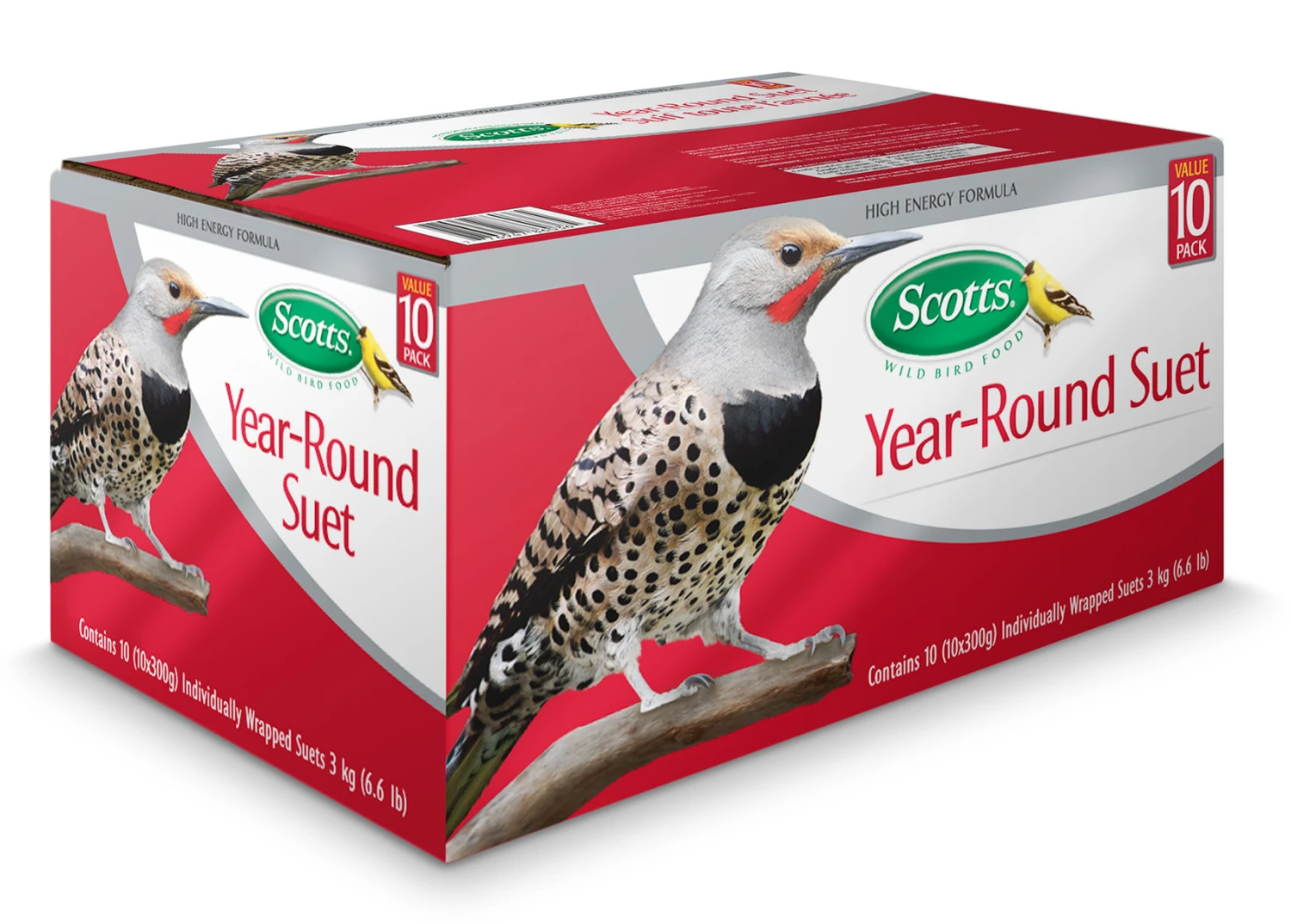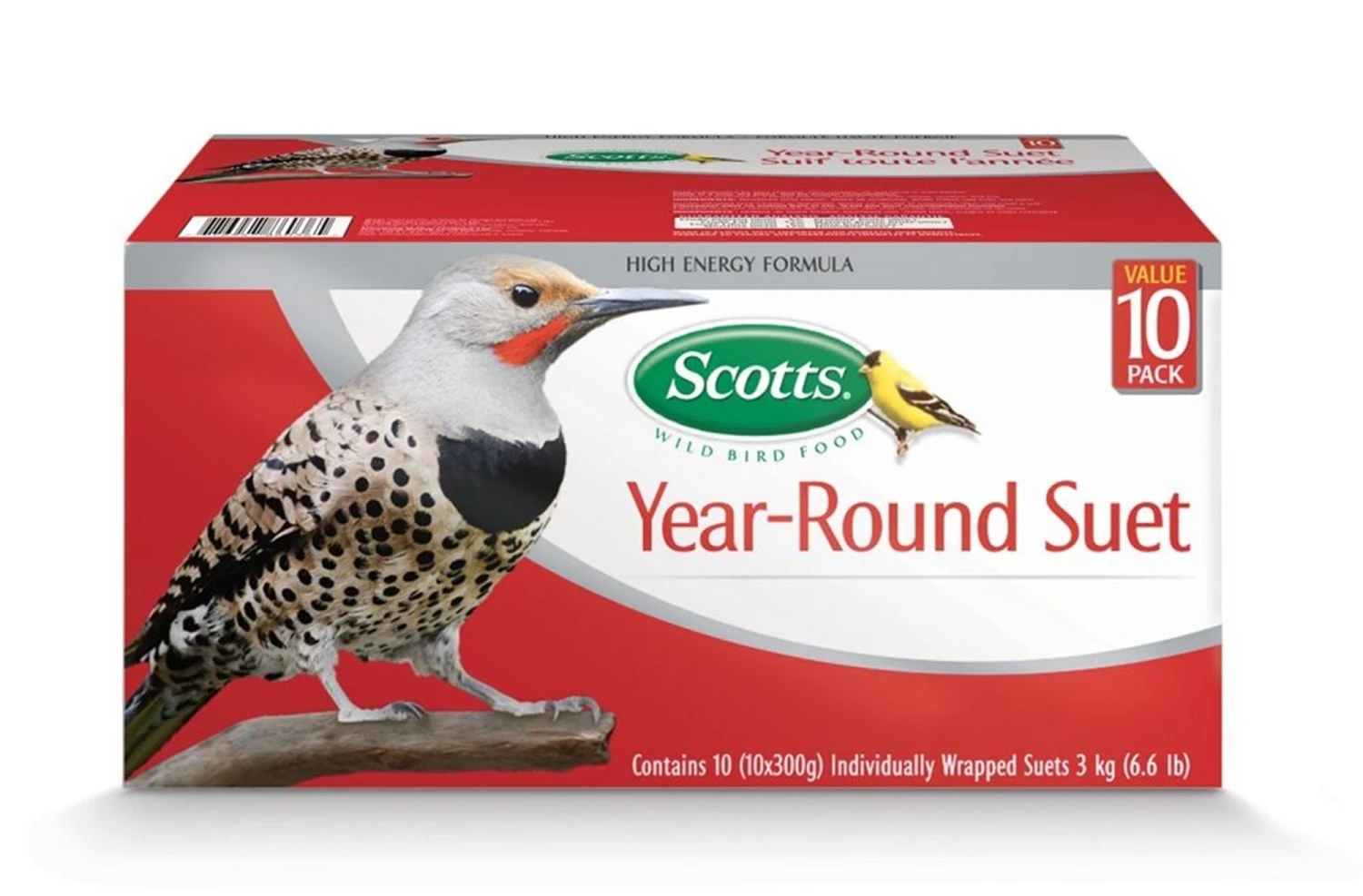 - Scotts Year-Round Suet 10 Pack is a convenient way to feed high energy treats to your wild birds: Contains 10 cakes of 300g suet.