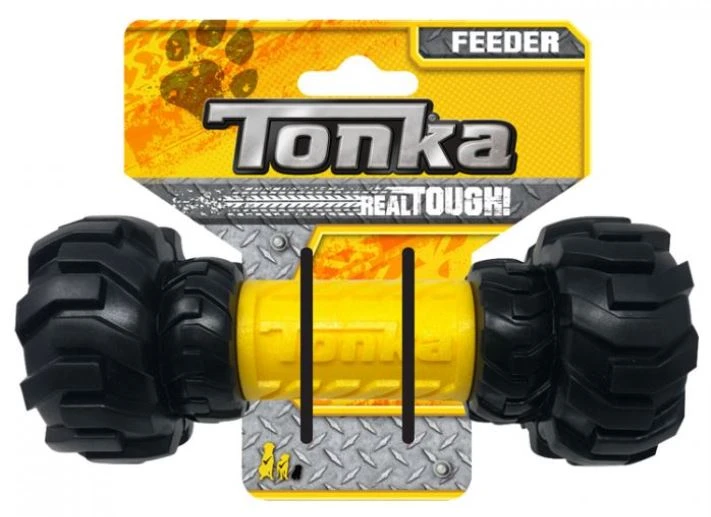 Keep your furry friend entertained for hours as they try to get the hidden treats out with this interactive axle feeder. The tire tread makes for easy grip, while the axle shape makes picking up a breeze for your dog. Strong as a tire, it’s Tonka tough!